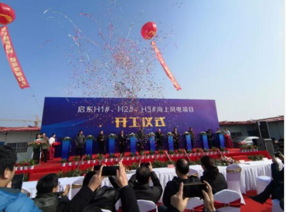 12月28日,华能分公司与一公司共同组建项目部参建的江苏启东海上风电项目在江苏省启东市吕四港举行开工仪式。启东市副市长高广军,吕四港开发区管委会主任、吕四镇镇长陈红飞,江苏华尔锐风电科技有限公司总经理陆永新,华勘院副院长方涛,上海电气海上风电总经理吴改,华能江苏分公司副总经理王茂华,分公司副总经理申振华、工程管理部副经理张兵以及项目部常务副经理(主持工作)王国庆、项目总工李春雷、项目生产副经理曹海岳出席开工仪式。