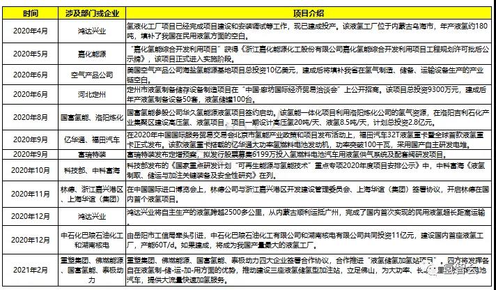2020年4月,鸿达兴业发布公告称,氢液化工厂项目已经在内蒙古完成项目建设和安装调试等工作,现已建成投产。这填补了我国在民用液氢方面的空白,推动了我国液氢产业的发展。