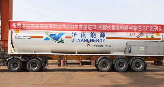 2018年11月,一艘载有液化天然气(LNG)罐式集装箱的运输船“乐从”号驶入龙口港,龙口港完成国内首船LNG罐箱整船运输。2020年12月,龙口港举行了日本—龙口LNG罐式集装箱首航仪式,40个LNG罐箱由日本海运至龙口港卸船,成功开启了日本LNG进口中国的海上物流通道。4月8日,自马来西亚启航的中国籍“泛舟6”轮载运着205个LNG罐柜靠泊龙口港,标志着龙口港成为国内首个成功开展国际整船载运LNG可移动罐柜业务的港口。而这次,济南能源集团再次用LNG罐式集装箱从日本整船进口液化天然气。