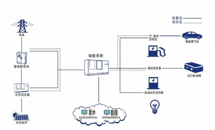 “光储充换”是分布式光伏、储能系统和放电的“组合”,通过一体化解决方案、集光伏发电、储能、微网控制、电动汽车充电、低速车换电于一体,利用电池储能系统吸收光伏电力,支撑快充、快换负荷。
