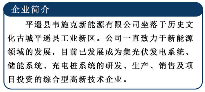 平遥县韦施克新能源有限公司总经理张炜先生表示,该项目得以顺利的落地投运,得益于晋中市和平遥县政府及相关部门对企业提供的全面的政务服务及政策的大力支持。今后公司以此项目为契机点,继续致力于新能源领域的发展,为客户提供最优的综合智慧能源整体解决方案,并将在综合智慧能源方面开辟出新的道路,推动社会绿色低碳高质量发展。