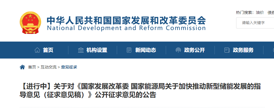 关于对《国家发展改革委 国家能源局关于加快推动新型储能发展的指导意见(征求意见稿)》公开征求意见的公告