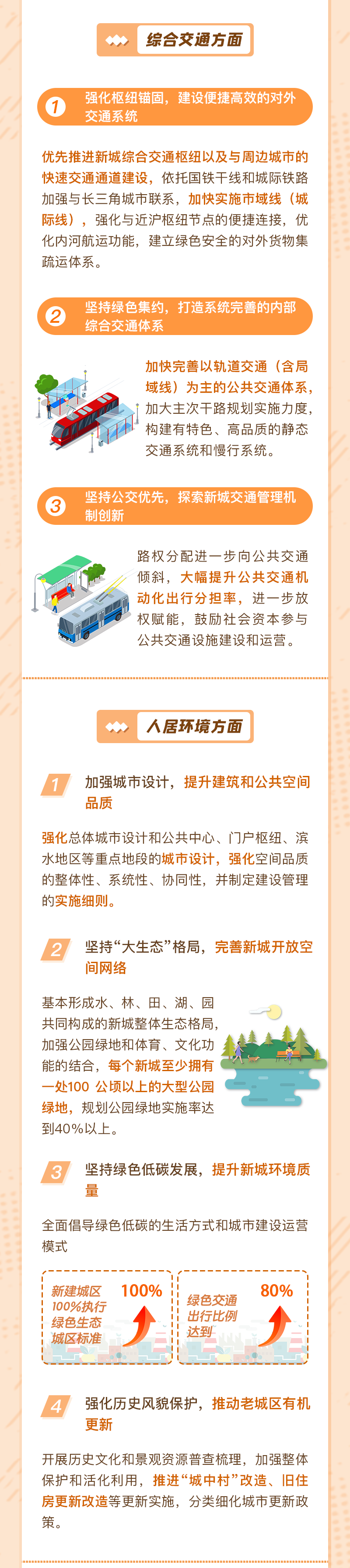 2.坚持以人民为中心,落实人民城市理念。回应人民群众对良好人居环境的向往和需求,重点关注人居品质提升,在公共服务设施覆盖、交通和市政基础设施提升、历史文化传承、生态环境治理、城市特色空间营造等方面创新突破,破解制约发展、群众反映强烈的突出问题,优先推进显示度高、获得感明显的重大民生项目。创新治理方式,提升新城科学化、精细化、智能化管理水平。