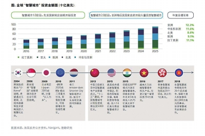 为了应对城市化所带来的挑战,在过去的十多年里,各国大力投资建设智慧城市,投入金额逐年增加,预计将在未来五年内达到高峰,由于拥有后发优势和巨大的发展潜力,亚洲国家和地区在智慧城市建设上有更大的发挥余地。