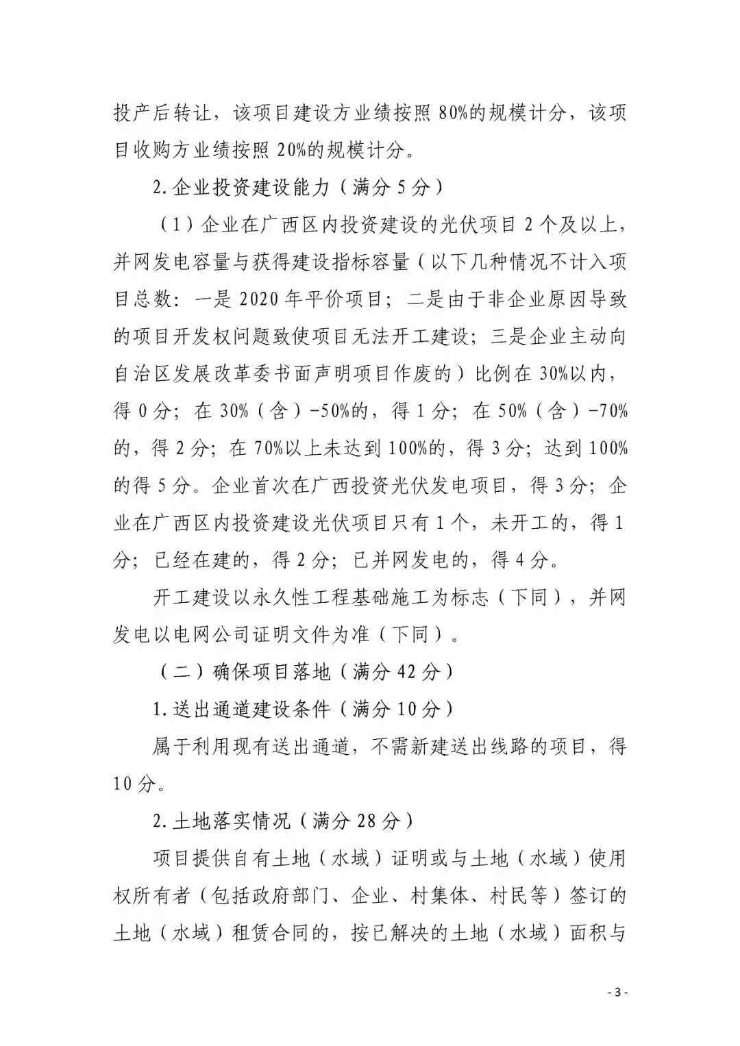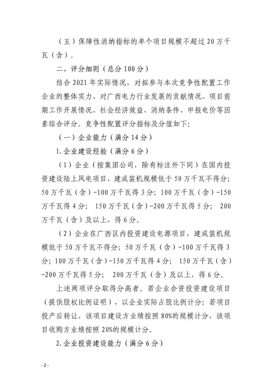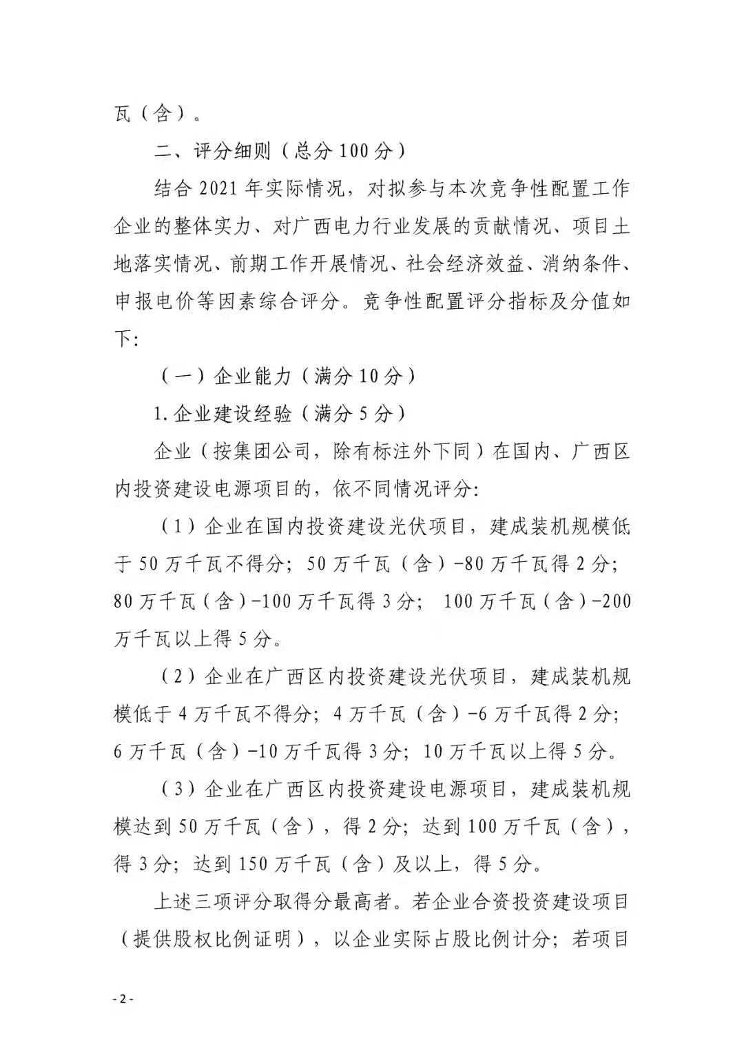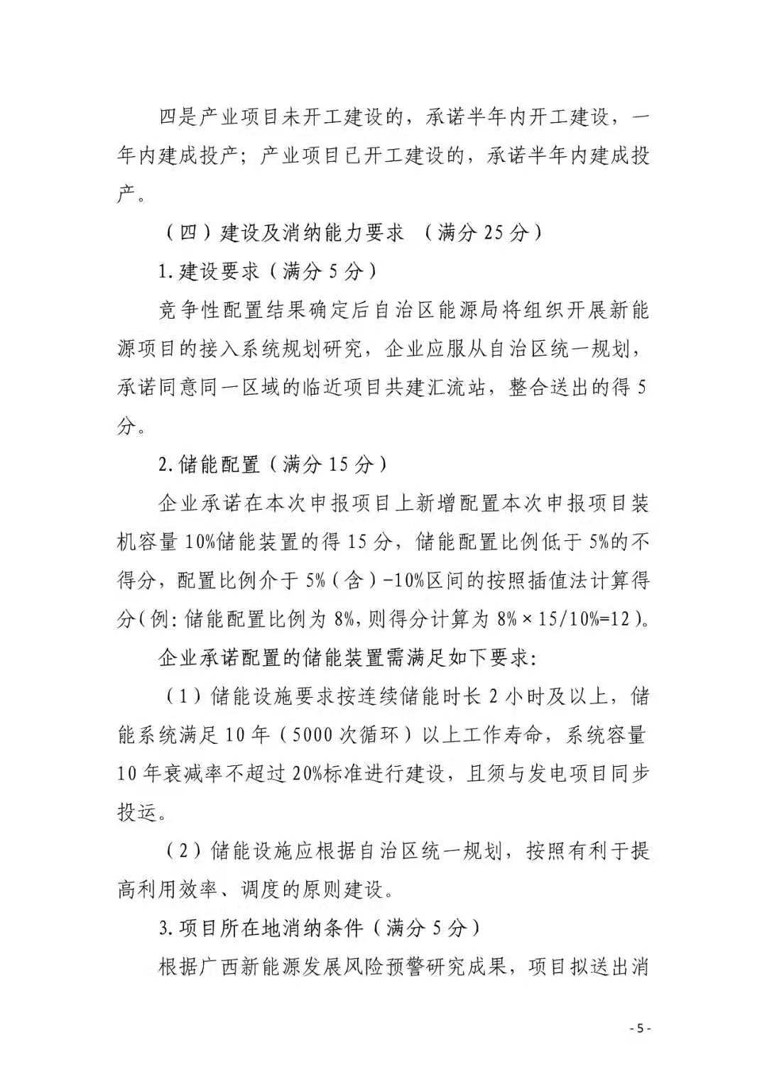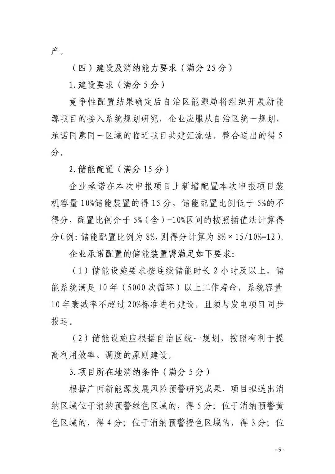 广西2021年度第二次风电、光伏竞争配置评分标准:至少配5%储能,时长2小时,循环寿命5000次