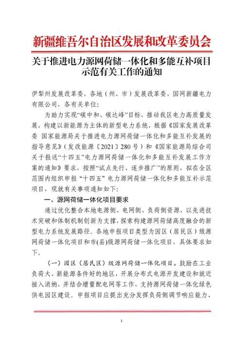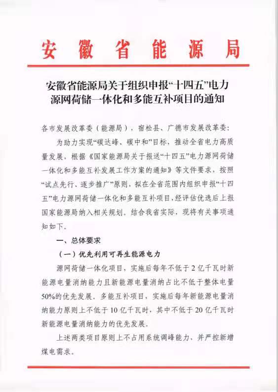 安徽、新疆启动源网荷储一体化和多能互补项目申报