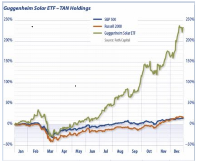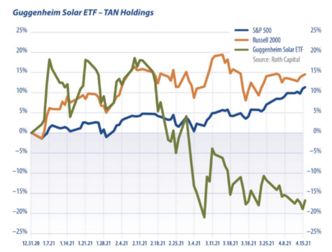 今年四月,追踪MAC全球太阳能指数的美国景顺基金(Invesco Solar ETF),其表现明显逊于标普500和道琼斯工业指数。古根海姆太阳能ETF (TAN)下跌8.7%,而标普500指数和道指分别上涨3.4%和2.7%。相比去年12月,古根海姆太阳能ETF (TAN)上涨了23.2%,而标准普尔500指数和道琼斯指数均只上涨了2.6%。