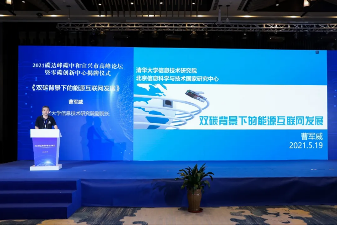随后,江苏现代低碳技术研究院首席科学家曹军威教授作了《双碳背景下的能源互联网发展》主题演讲。