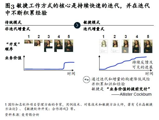 面对日新月异的市场环境,企业若想从容应对风险,最好的办法就是接受各种变量的存在,并快速拥抱新事物的降临。敏捷型组织通常也是学习型组织,企业领导层会鼓励每位员工从自身或他人的成败经验中汲取教训,不断提升自身所需的新知识和新技能,并在组织内部展开知识和经验分享。这种持续的学习和调整有助于快速交付,在此过程中,员工积极改进业务流程和工作方式的热情也会被激发,从而实现业务绩效的持续改进。