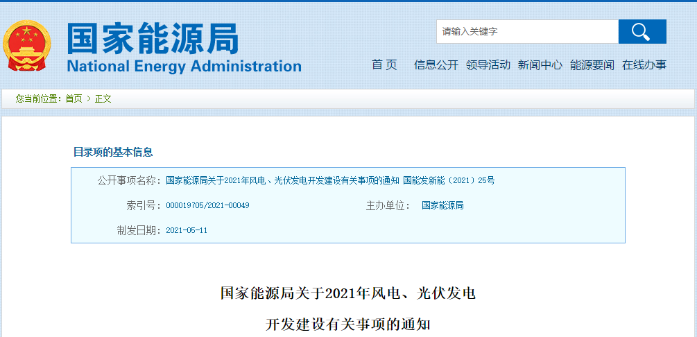 5月20日,国家能源局正式印发《关于2021年风电、光伏发电开发建设有关事项的通知》(国能发新能【2021】25号),根据文件,各省(区、市)完成年度非水电最低消纳责任权重所必需的新增并网项目,由电网企业实行保障性并网,2021年保障性并网规模不低于9000万千瓦。具体原文如下:
