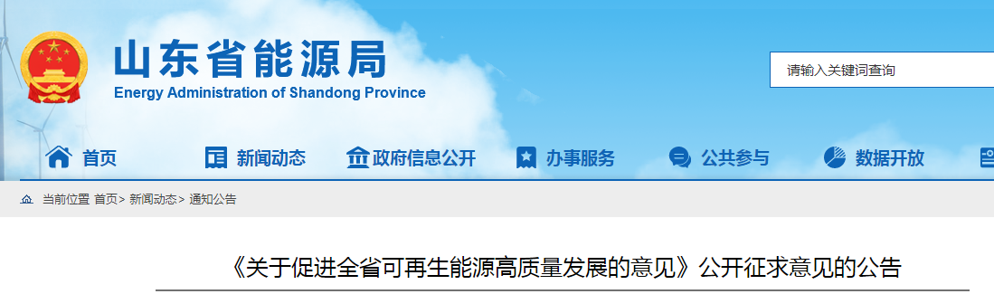 6月7日,山东省能源局发布《关于促进全省可再生能源高质量发展的意见》公开征求意见的公告,征求意见稿提出: