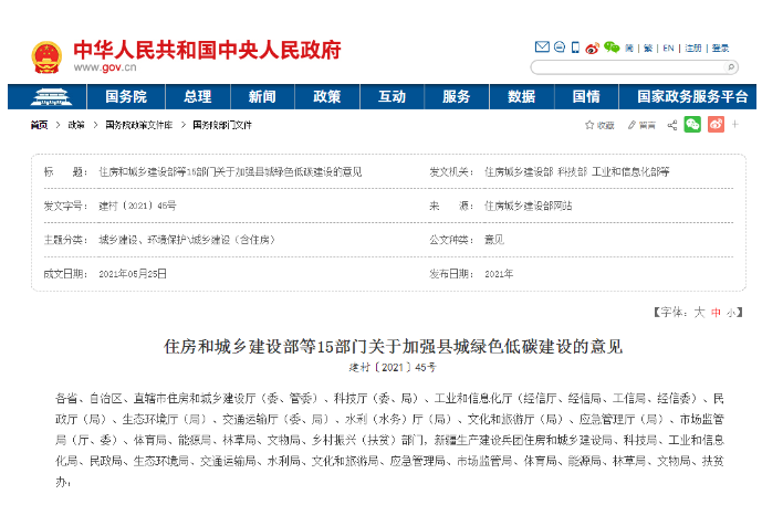 近日,住建部、能源局等15部门联合发布《关于加强县城绿色低碳建设的意见》,明确提出了要大力发展绿色建筑和建筑节能。县城新建建筑要落实基本级绿色建筑要求,鼓励发展星级绿色建筑。通过提升新建厂房、公共建筑等屋顶光伏比例和实施光伏建筑一体化开发等方式,降低传统化石能源在建筑用能中的比例。