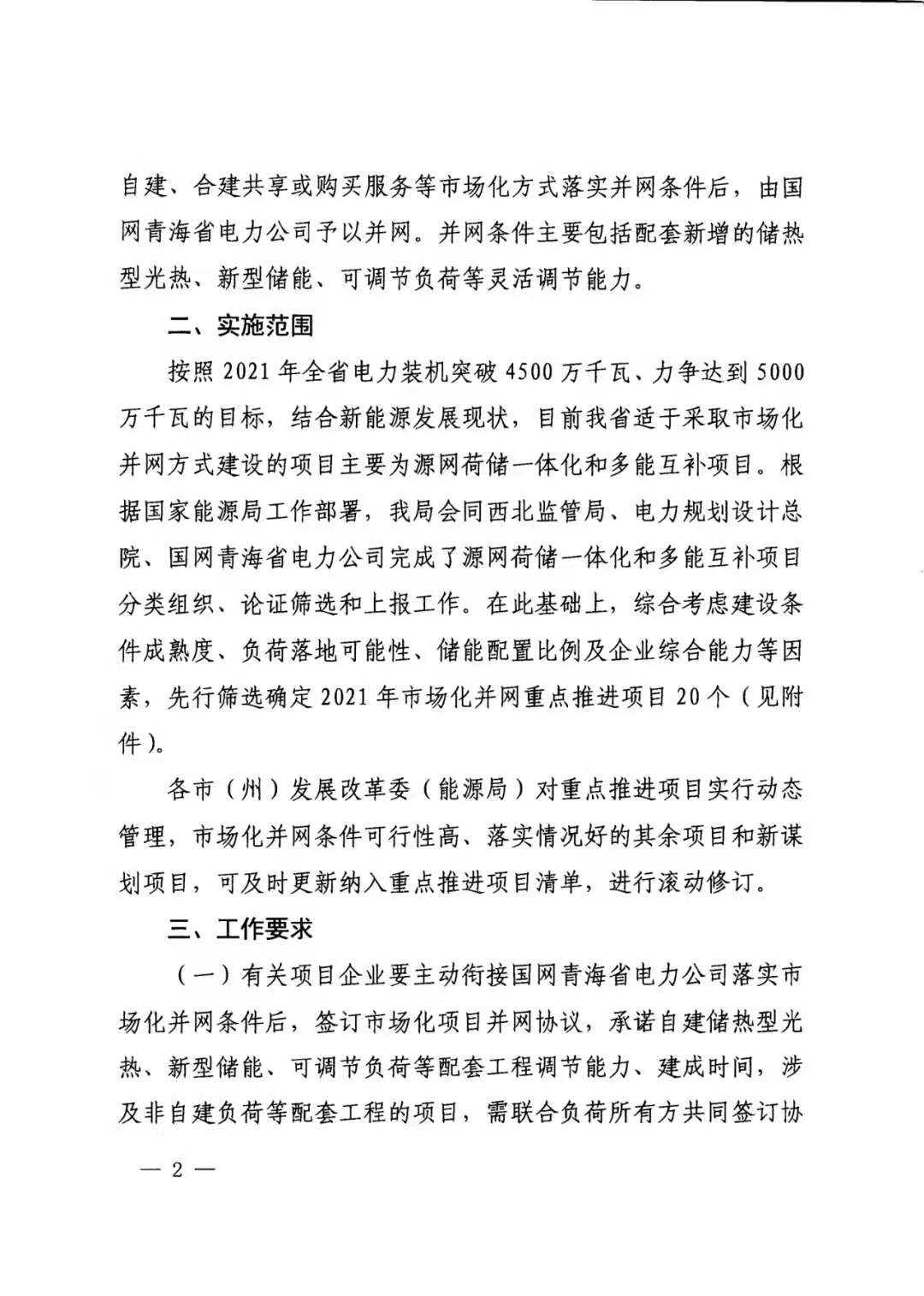 6月11日,青海省能源局下发《关于2021年市场化并网项目开发建设有关事项的通知》(青能新能〔 2021〕72号)提出: