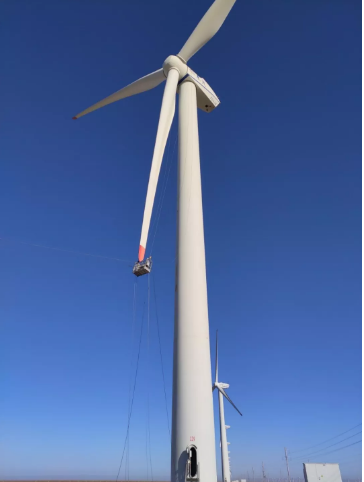 该示范项目共选择2台1.5MW机组进行示范样机改造,同时选取2台临近机组进行对比检验,安装时间4天,计划测试时长6个月。该技术具有安装安全系数高、现场施工周期短、叶片延长部分重量轻等特点,是国内首个风机“叶尖双小翼”增功组件安装项目。