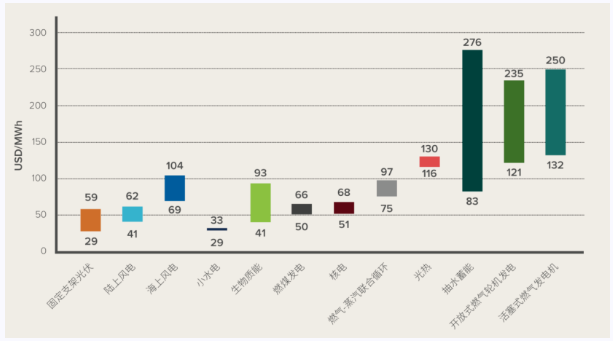过去10年,可再生能源的发电成本降幅巨大。根据彭博新能源财经数据来看,全球光伏和陆上风电的平准化度电成本(LCOE)分别下降了85%和60%,海上风电成本仅在过去的五年就下降了60%。未来可再生能源发电成本下降趋势必将持续。因此,光伏和风电成本很快会在一些国家降至甚至低于现有燃煤或燃气电厂边际运营成本。