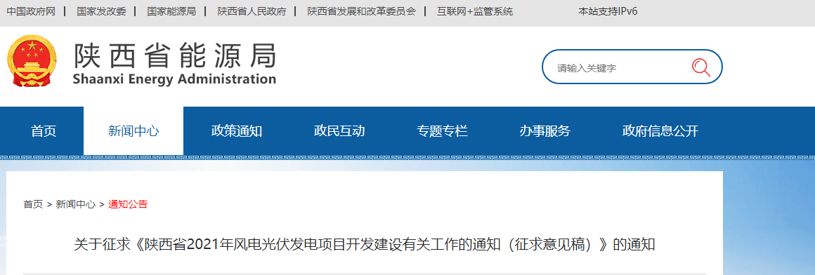关于征求《陕西省2021年风电光伏发电项目开发建设有关工作的通知(征求意见稿)》的通知