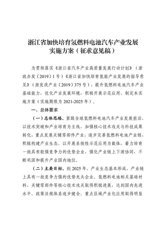 7月2日,浙江省发展和改革委员会发布《关于公开征求《浙江省加快培育氢燃料电池汽车产业发展实施方案(征求意见稿)》意见的通知》。