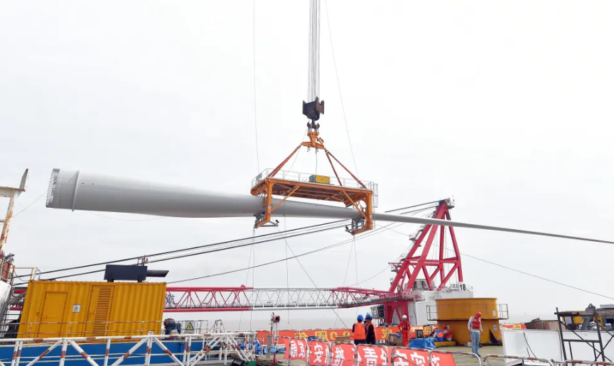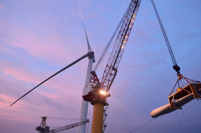 风场首台F1机位吊装恰逢全年水文状况最恶劣的大潮汛,海湾新能与金风科技凭借多年海上风电开发经验和领先技术,携手克服了施工现场水流大、流速快等施工难点,精准锁定作业窗口期,与各单位制定周密的施工计划,安全、高效地确保项目建设如期完成。