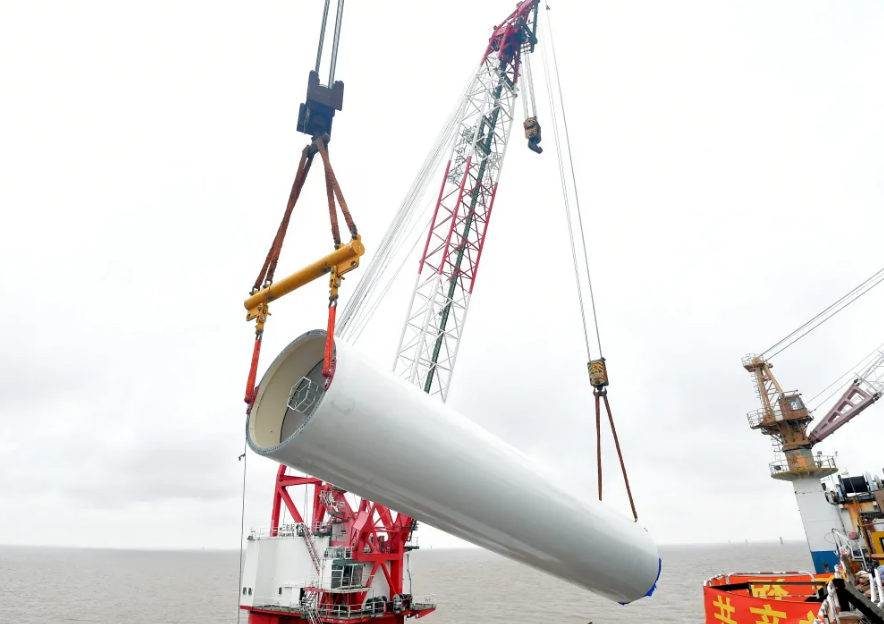 近日,我国首个竞争配置项目——上海奉贤海上风电项目(下简“奉贤项目”)顺利完成首台机组吊装。该项目位于奉贤区杭州湾北部海域,场址自东向西分为四块区域,总规划容量20万千瓦,由上海海湾新能风力发电有限公司(下称“海湾新能”)开发。此次首吊机型为金风科技GW184-6.45MW海上机组,该款机组搭载90米叶片,采用定制化降载策略及技术方案,在保障机组可靠性和安全性的前提下,能显著提升发电效益。