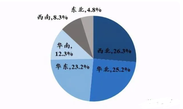 2019年我国西北、华北、华东地区氢气产能占比合计约75%