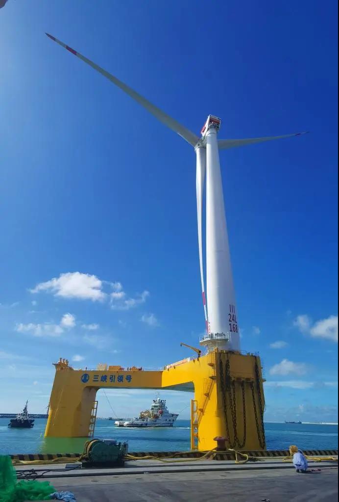 7月13日11时28分,由中国三峡新能源(集团)股份有限公司投资建设的我国首个漂浮式海上风电平台,搭载全球首台抗台风型漂浮式海上风电机组,组成“三峡引领号”,在广东阳江沙扒百万千瓦级海上风电场顺利安装,这意味着拥有完全自主知识产权的中国漂浮式风电机组及基础平台迈开了深远海风能资源获取的探索步伐。