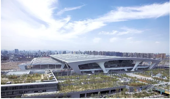 杭州东站是全国九大省会城市巨型车站建设工程的“收官之作”,该车站于2013年7月1日投入使用,总建筑面积达113万平米,站内汇集高铁、普铁、专线、地铁、磁浮、公交、水上巴士等多种交通方式和配套服务设施于一体并可实现立体无缝交通换乘,是亚洲超大型交通枢纽之一。