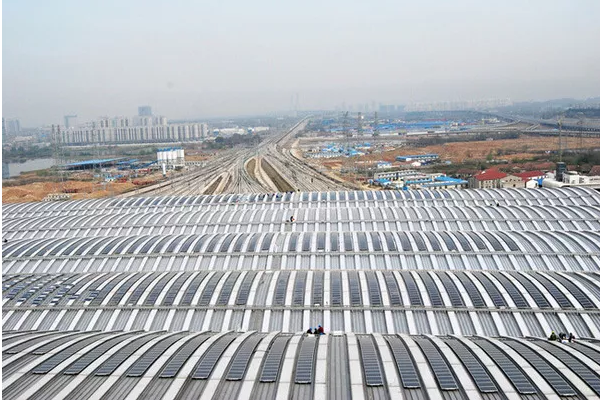 南京南站自2013年7月正式并网后,便成为全球最大的单体并网发电的光电建筑。落成后的南京南站,人们无不被其传统文化、现代科技、时代气息所感染,将其誉为“铁路之上的宫殿”真是再贴切不过了。