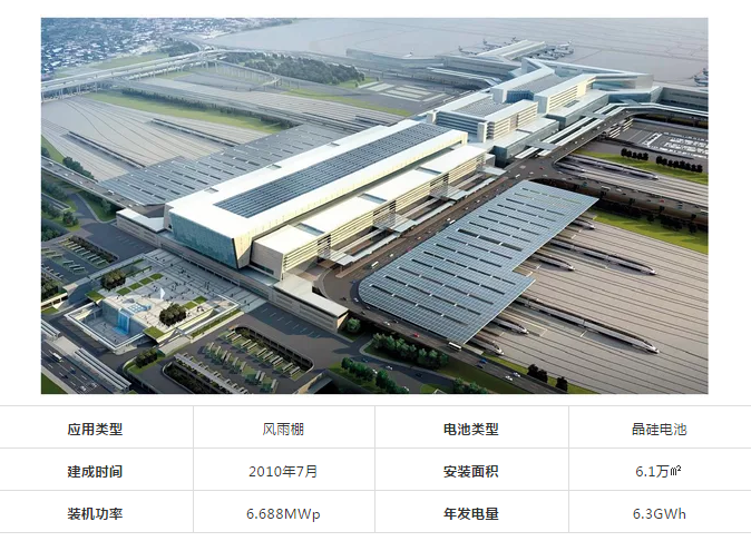 上海虹桥站是继武汉火车站之后,年发送客流量仅次于北京南站又一超大型综合客运站,在当时也是我国装机量最大的单体建筑光伏发电一体化电站,是铁道部为建设绿色枢纽站场、进一步提升铁路客运站的社会形象又一重要铁路站场光伏发电项目。