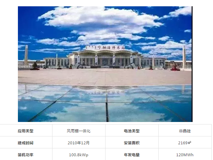 840块光伏组件与站台风雨棚紧密结合在一起,宛如草原雄鹰绚丽的羽翼,与建筑外形设计契合的天衣无缝,无疑这是一个光电建筑与民族特色文化完美融合的又一代表作。