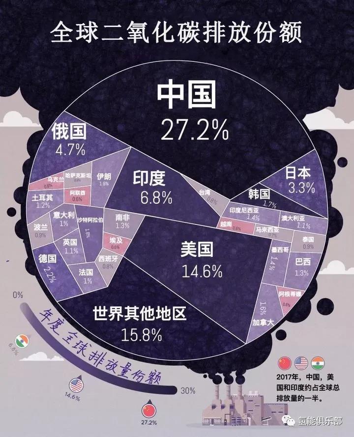 (全球二氧化碳排放份额,图片来源:知乎@大树)