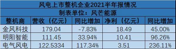金风科技虽然没有具体细分陆上风电和海上风电销售情况。但是从其此前公开的机组型号及目前市场行情来看,金风科技上半年业绩中的6S/8S平台风机默认为海上风机、3S/4S平台风机默认为陆上风机。从机组销售情况细表中可以看到,金风科技在海上风电的机组销售容量也有近4倍大幅度提升,比明阳智能、电气风电的海上风电增幅都大。