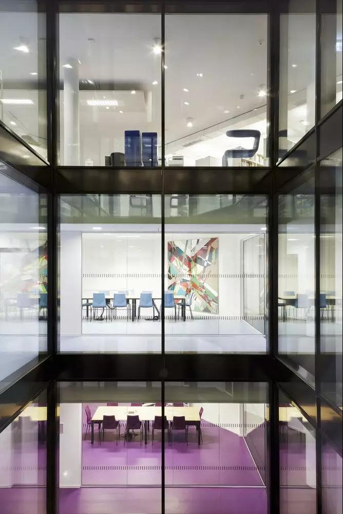 特殊立面由反向倾斜的蓝光玻璃和光伏太阳能元件组成,完美适合太阳辐射的朝向和入射角度。