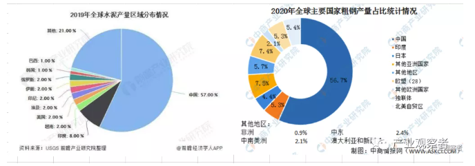 中国是全球重化工业最大的国家,承担了全球57%左右的水泥和钢铁产量,又是全球煤炭比例最高的经济体。2020年中国原煤产量为38.4亿吨,占全球产量74.38亿吨的51%;中国煤炭消费量为28.29亿吨,占总能源消费量的56.9%,