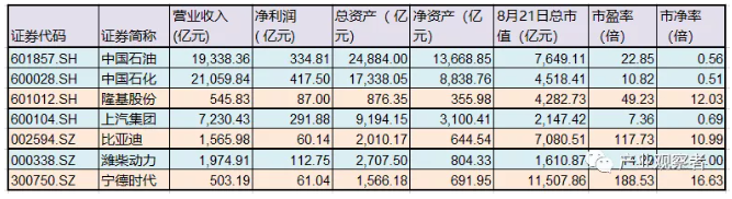 表5 传统能源和汽车企业与新能源及新能源汽车的估值比较