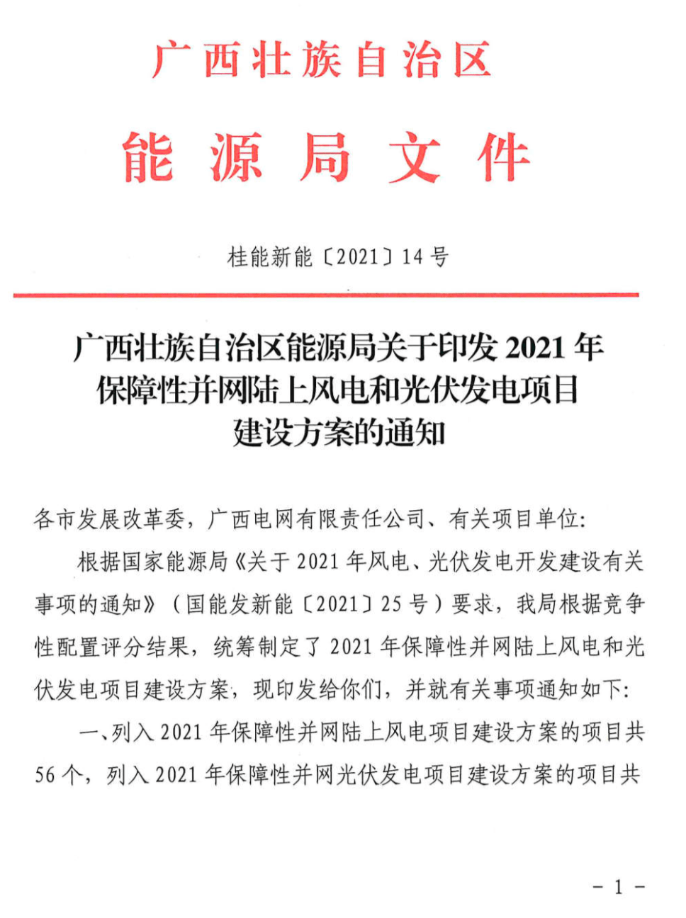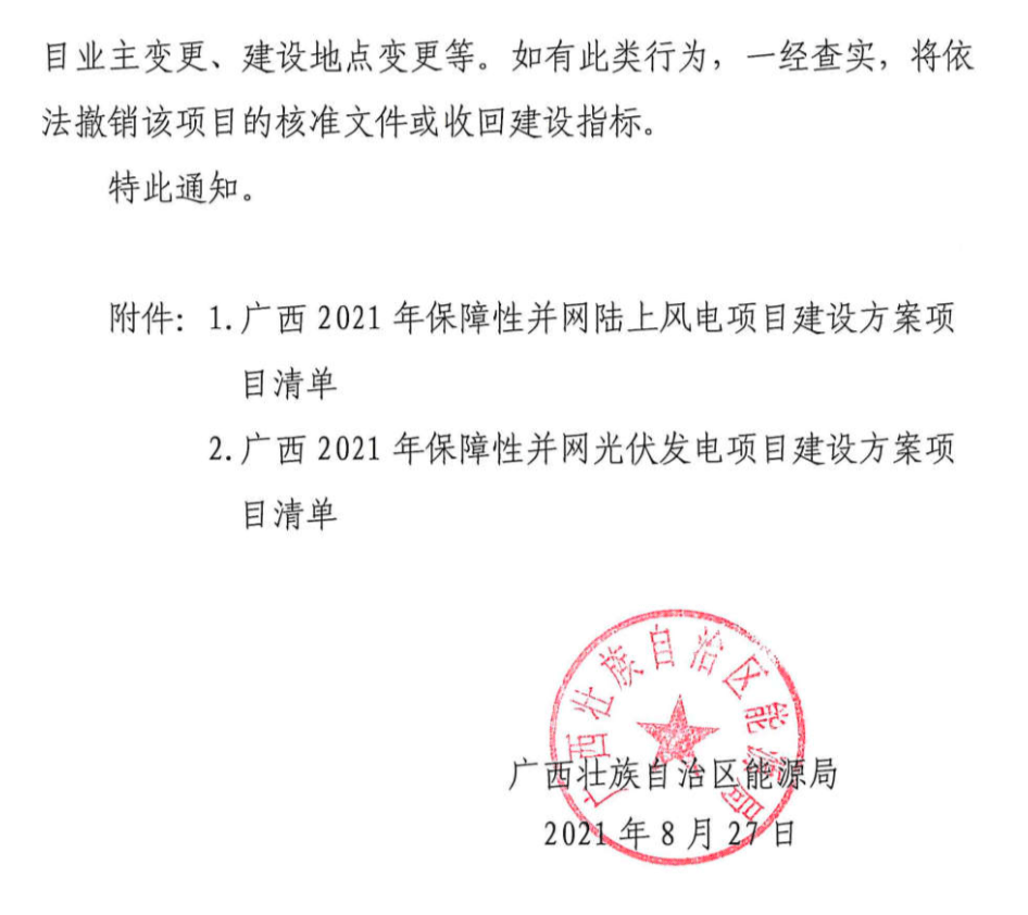 8月27日,广西省能源局印发《关于2021年保障性并网陆上风电和光伏发电项目建设方案的通知》(下称《通知》)。