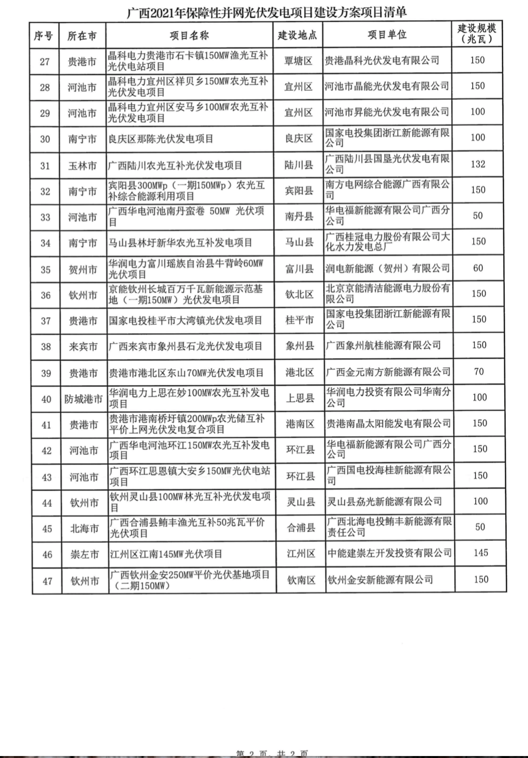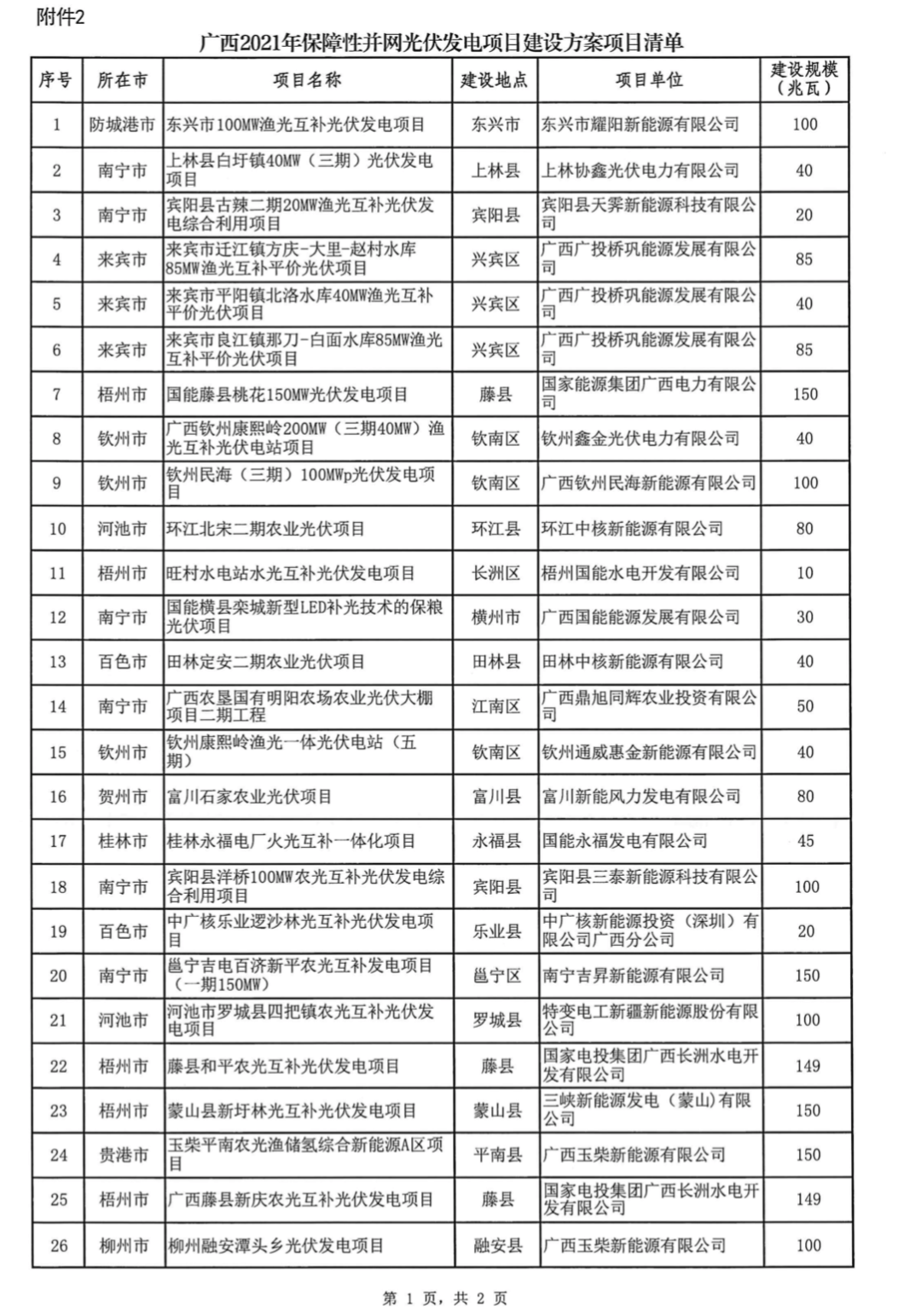 广西省2021年风光保障性并网建设方案:光伏4.66GW,陆上风电4.8GW!