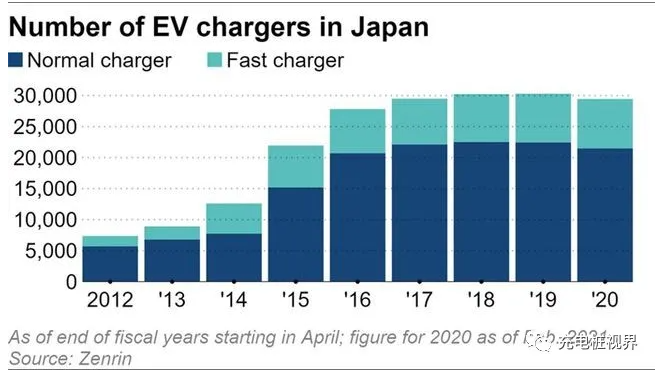 2012财年,日本政府提供了总计1000亿日元(约合9.11亿美元)的补贴,以建设充电站并刺激电动车市场发展,充电桩如雨后春笋般涌现。但据Zenrin公司数据显示,从2020年4月到2021年3月,日本电动汽车充电桩数量从30300多个下降到了约29200个。这是该公司自2010年开始收集数据以来的首次下降。
