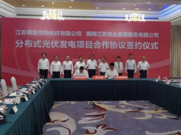 9月1日上午,国网江苏综合能源服务有限公司与江苏桐昆恒阳化纤有限公司《分布式光伏发电项目合作协议》签约仪式在宿迁举行。