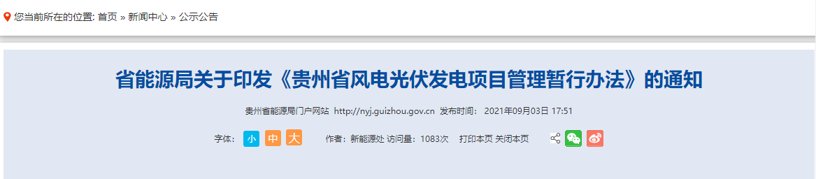 省能源局关于印发《贵州省风电光伏发电项目管理暂行办法》的通知