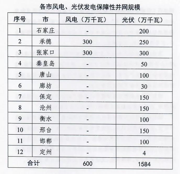 河北省发改委发布了《关于做好2021年风电、光伏发电开发建设有关事项的通知》,其中要求光伏发电保障性并网规模1584万千瓦,风电600万千瓦。并明确并网时间,风电项目应于2023年12月31日前全容量建成并网,光伏发电项目应于2022年12月31日前全容量建成并网。