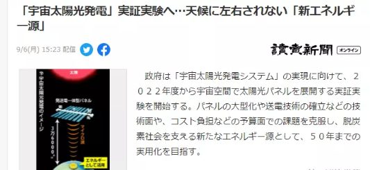 9月6日今天,日本政府以及日本宇航局(JAXA)宣布,将于2022年启动在宇宙太空空间实行太阳能发电的实际测试,该项目比起地球太阳能有着不受天候的影响的优点,可以持续稳定高效的获取能源,预定2050年实现实用化。