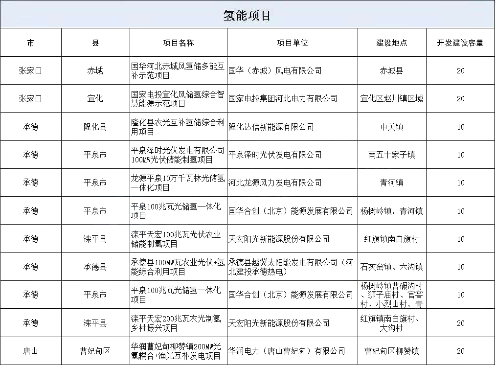 11个氢能项目!河北省2021年风光发电保障性并网项目公示