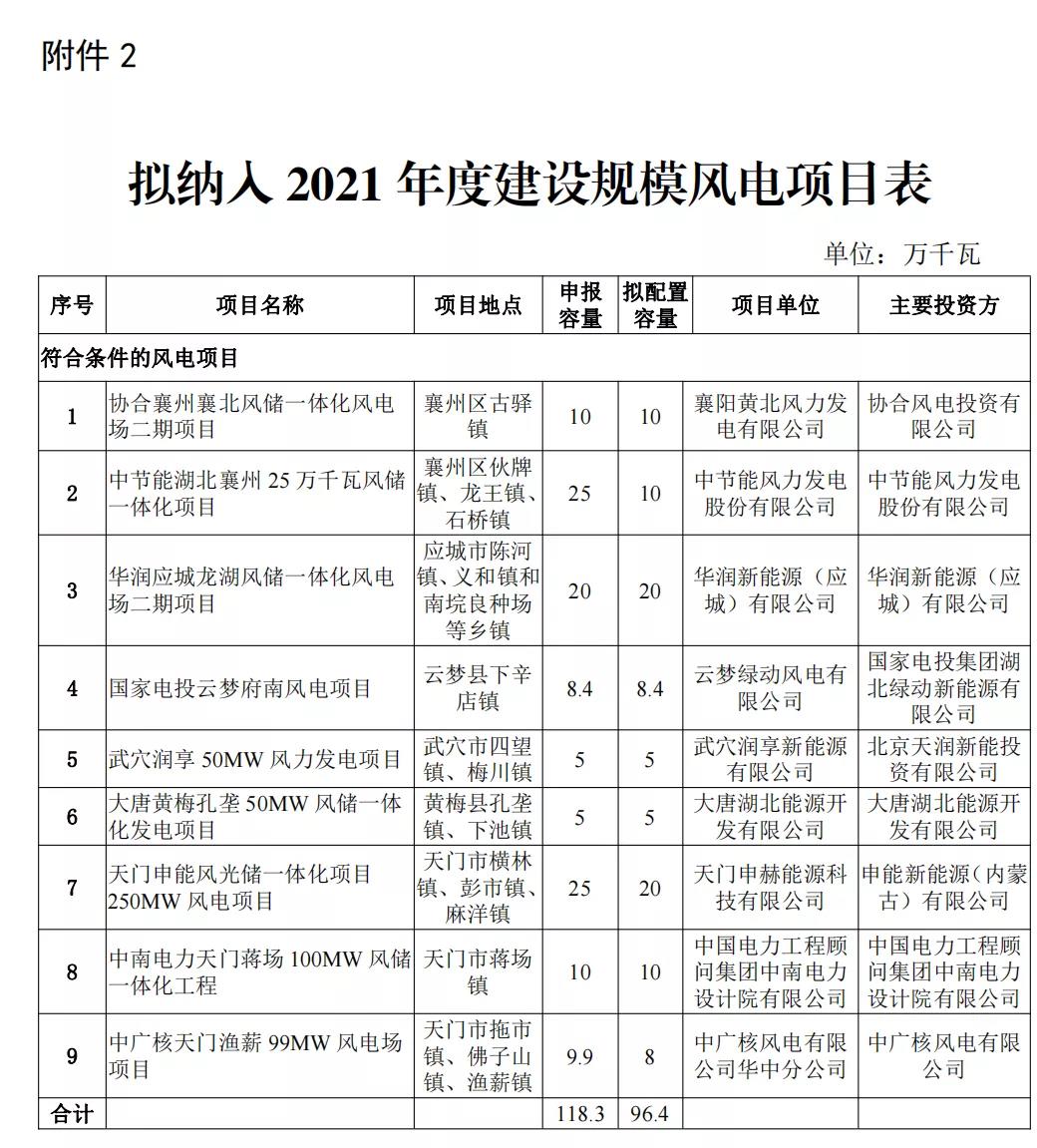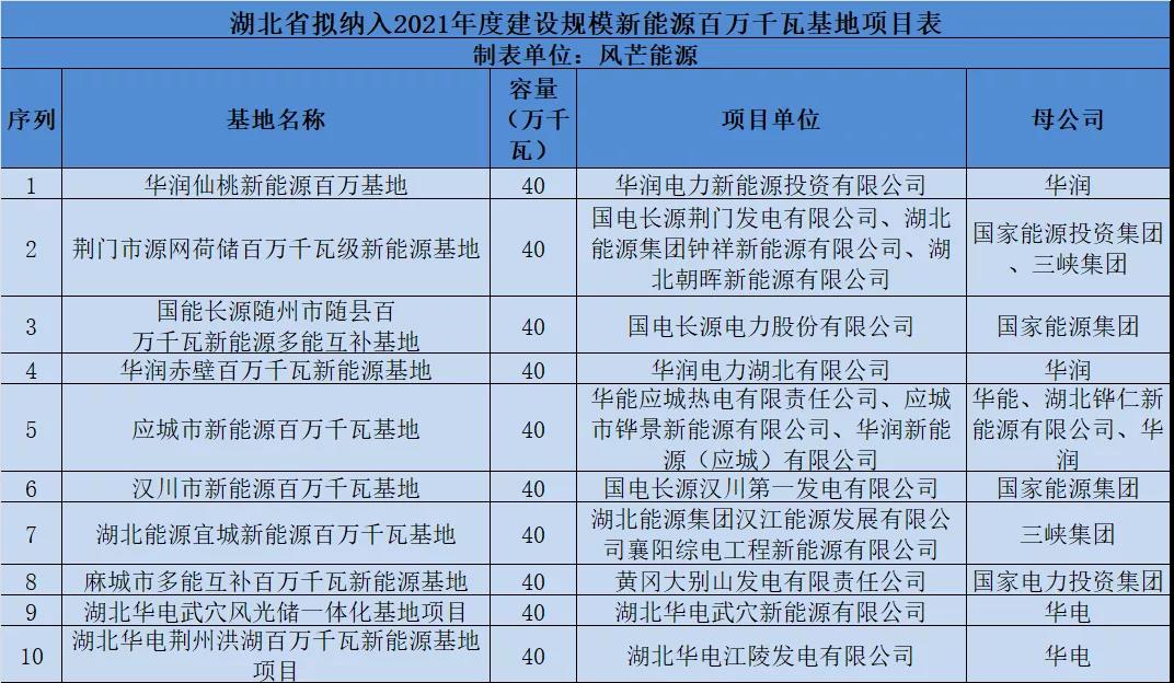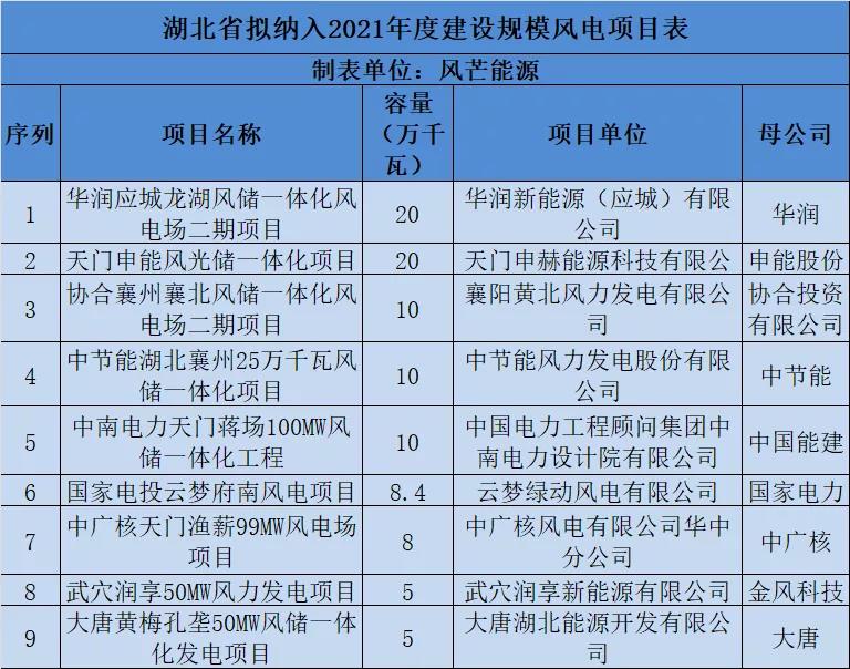 湖北2021年平价新能源项目:风电964MW,华润、国能投领衔!