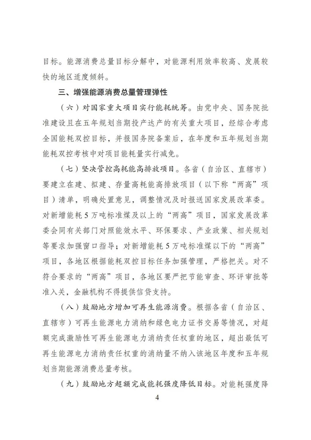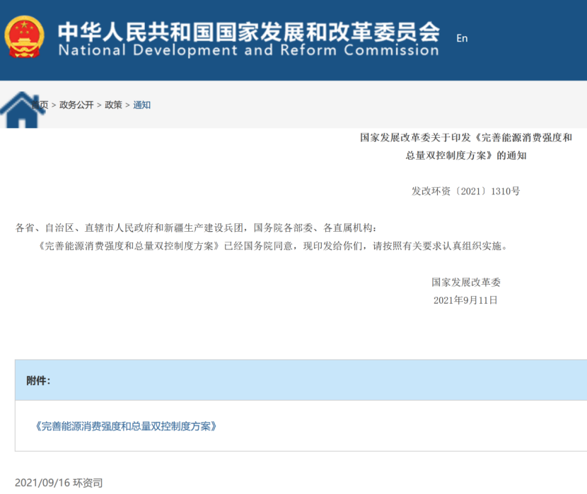 在国家发展改革委今日印发《完善能源消费强度和总量双控制度方案》中,明确各地要结合地方实际,差别化分解能耗双控目标,鼓励可再生能源使用,重点控制化石能源消费。合理设置国家和地方能耗双控指标,国家层面预留一定总量指标,统筹支持国家重大项目用能需求、可再生能源发展等。鼓励地方增加可再生能源消费。