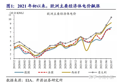 年初以来,欧美电价持续大幅上涨,欧盟电价更是较1年前高出1倍有余。