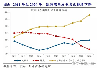 就其原因,也是能源结构问题,欧洲是新能源占比,增加最猛的,天然气持平,煤炭大跌。