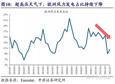 而新能源,欧洲的风电在超高压天气下,直接歇菜了: