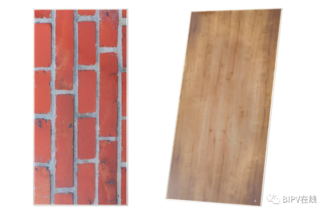 然而建筑立面除了透光区域,还有非常多的非透光区域,这些区域也非常适合安装光伏。但为了与建筑物整体外观保持一致,对光伏建材的外观有比较高的要求,比如要达到石材、铝材、木纹等外观效果。