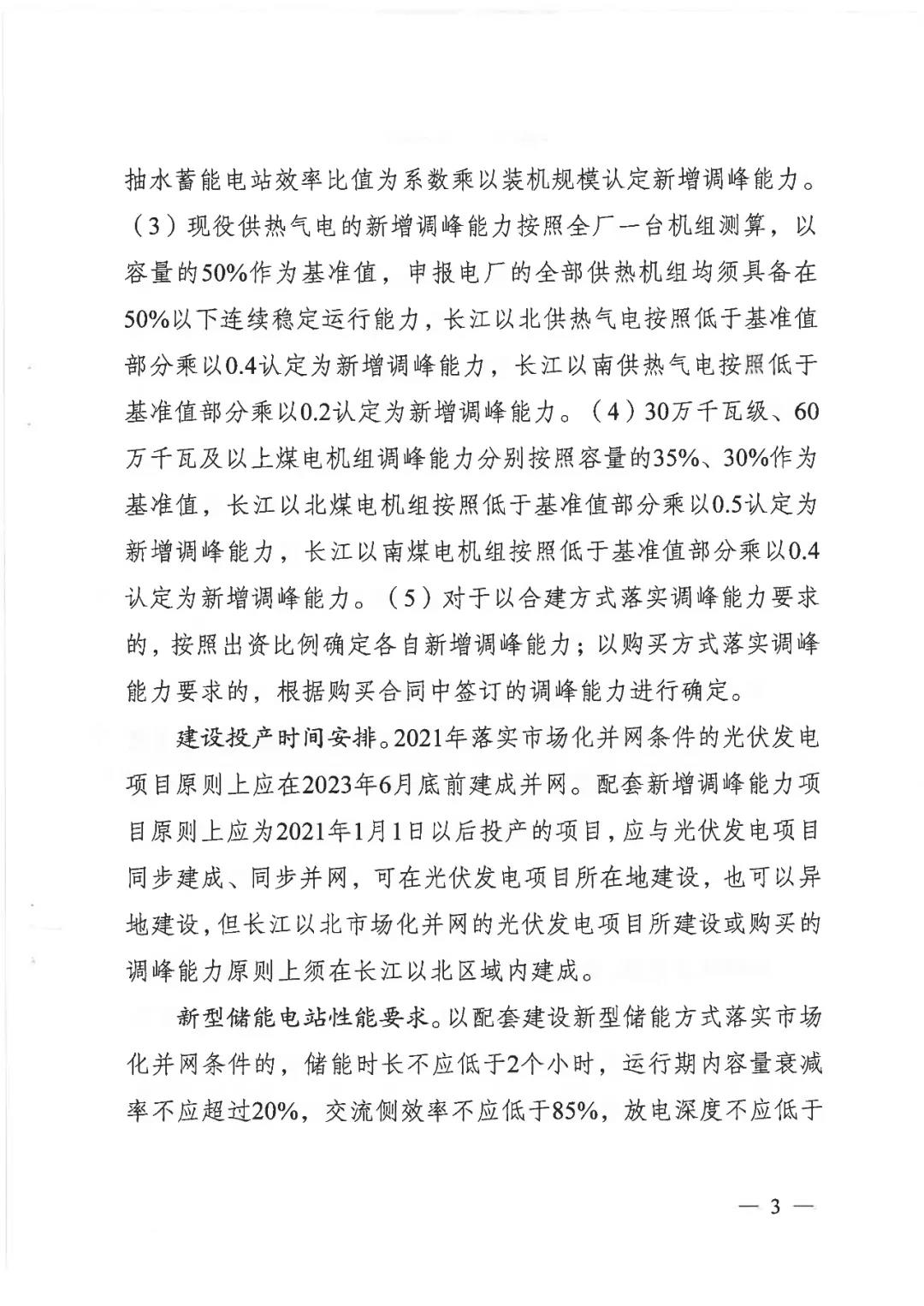 2021年落实市场化并网条件的光伏发电项目:原则上应在2023年6月底前建成并网。配套新增调峰能力项目原则上应为2021年1月1日以后投产的项目,应与光伏发电项目同步建成、同步并网,可在光伏发电项目所在地建设,也可以异地建设,但长江以北市场化并网的光伏发电项目所建设或购买的调峰能力原则上须在长江以北区域建成。