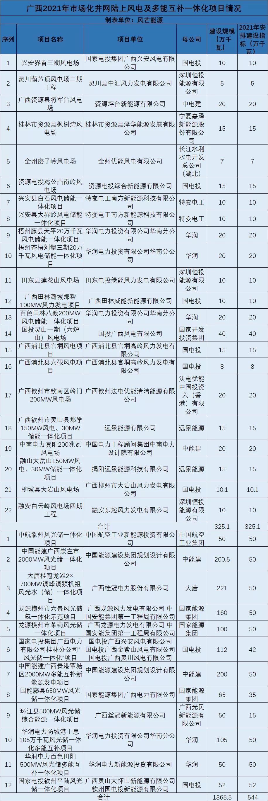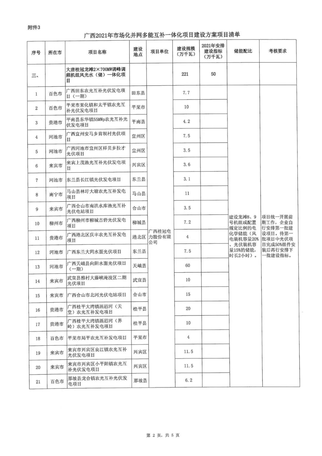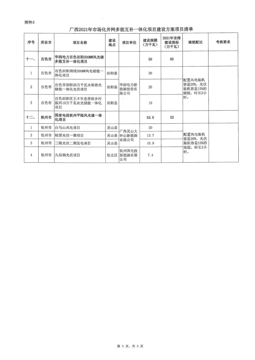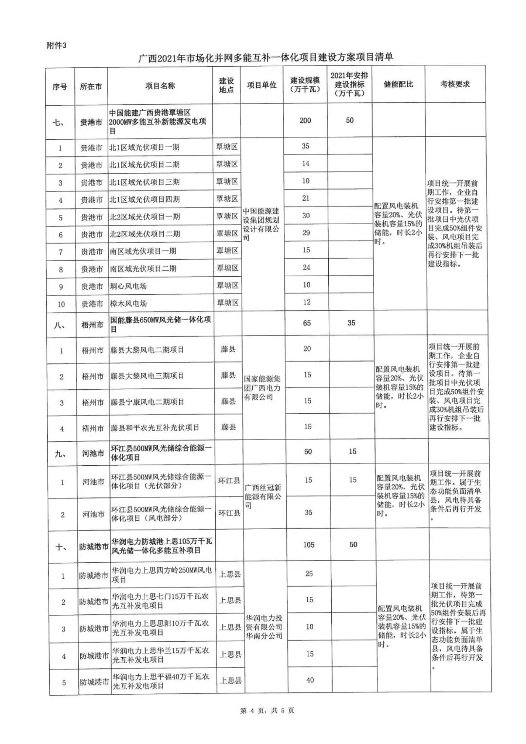 10月9日,广西壮族自治区能源局印发《2021年市场化并网陆上风电、光伏发电及多能互补一体化项目建设方案的通知》。